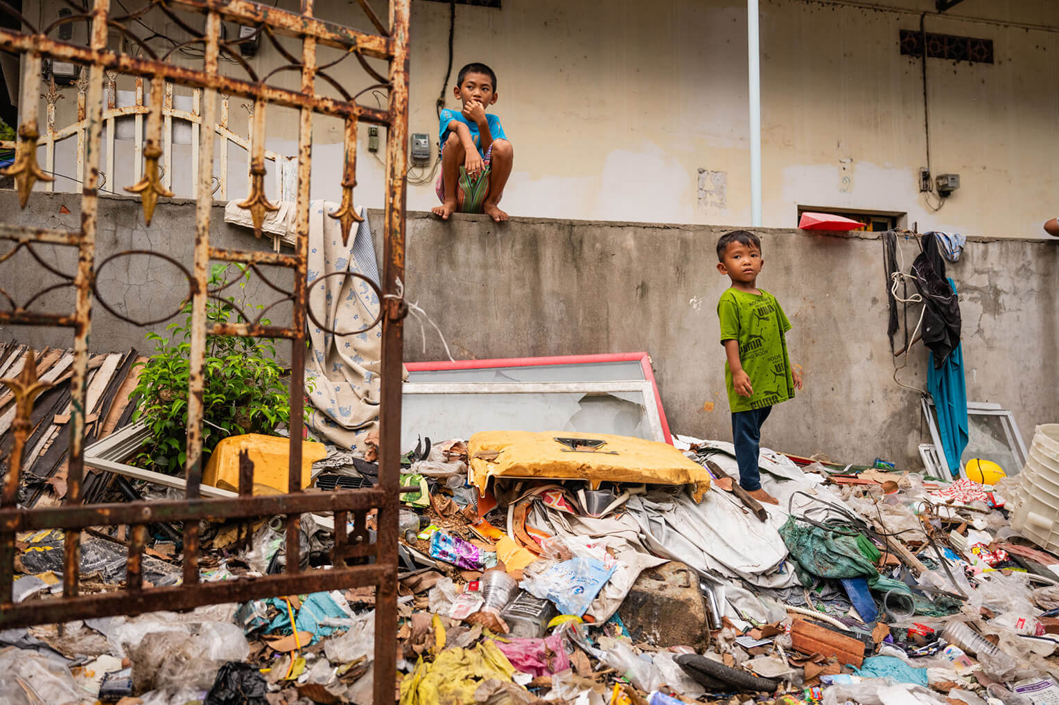 Samnang’s family lives right next to a trash collection area in their neighbourhood. Hordes of flies and insects rise from the piles of garbage as children tromp through it to clamber over the wall and play with their friends. The inherent danger is lost on them—this is simply life.